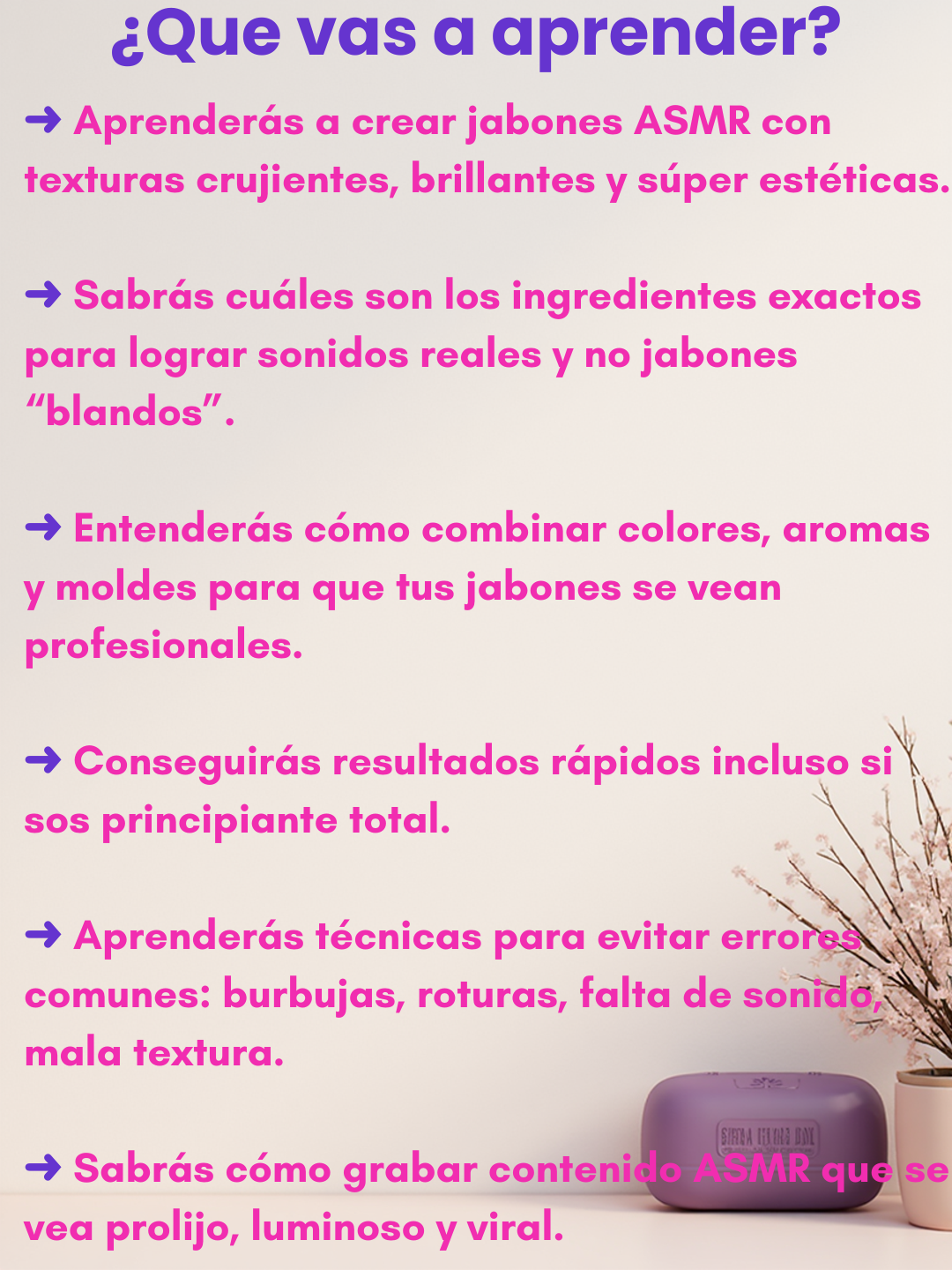 “Nunca había hecho jabones y con el ebook me salieron a la primera. Súper claro y lleno de ideas ASMR.”